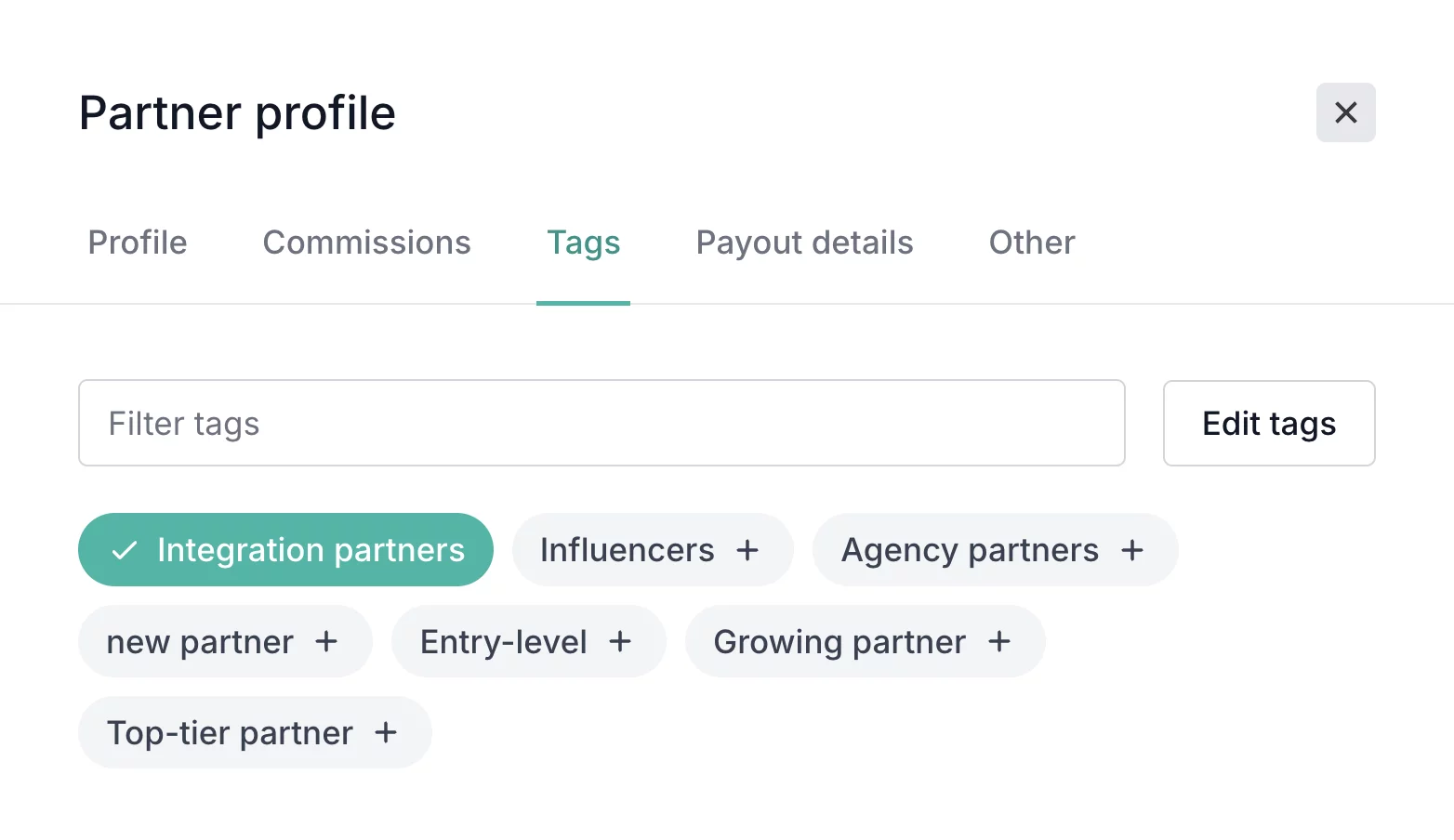 Use tags to unlock different commission structures for different partner and customer groups.